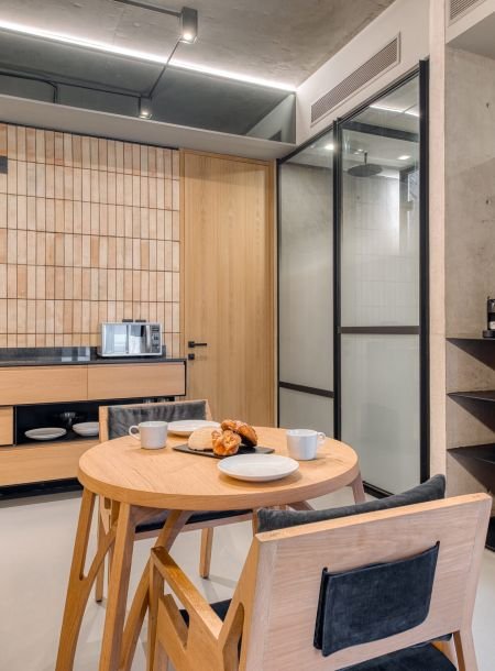 Experience comfort and privacy in our Deluxe Apartment, designed for travelers seeking a calm and modern stay. Enjoy a private entrance that opens into a serene living area, a cozy bedroom with a King-size bed dressed in premium linens, and a convenient kitchenette equipped with a refrigerator and microwave. The apartment also features a private bathroom with complimentary amenities, air conditioning, and a flat-screen TV—everything you need to unwind and feel at home. Perfect for solo travelers or couples looking for a refined, effortless stay.