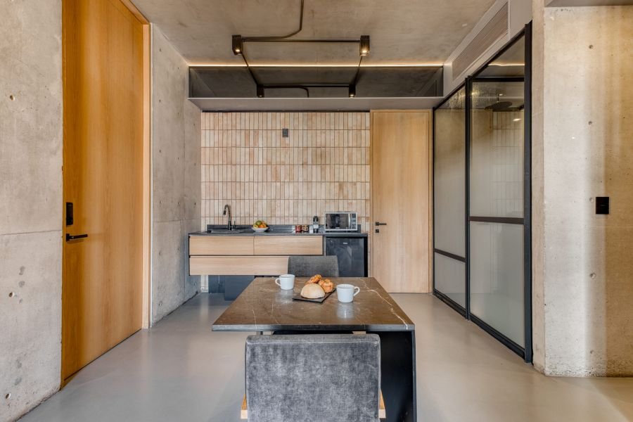 This spacious apartment features a private entrance, a King-size bedroom, a comfortable living room, and a fully equipped kitchenette. With a private bathroom, air conditioning, and a flat-screen TV, it offers both functionality and comfort—ideal for flexible, modern stays.